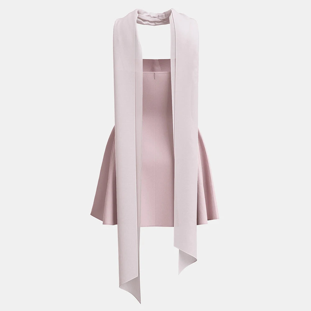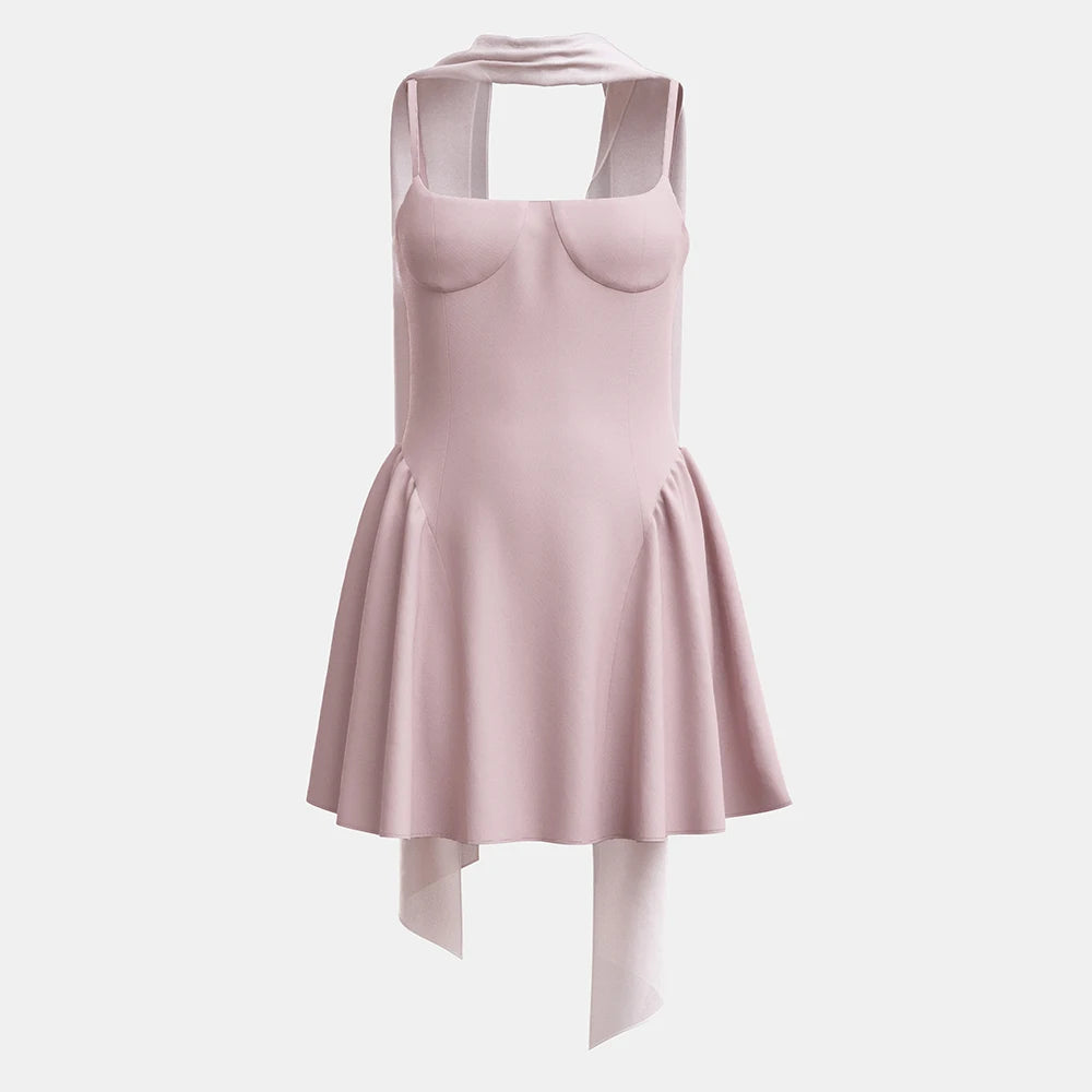 Dresses Summer Elegant Decent Solid Color Sleeveless Square Neck Mini Pleated Hem Evening Dresses For Women