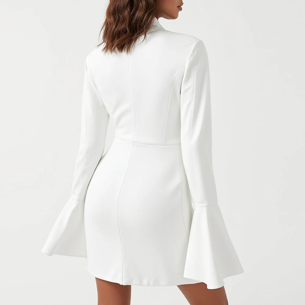 Spring Summer 2025 K-Fashion Hotsweet Solid Color Long Sleeve V-Neck Zipper Dresses For Women