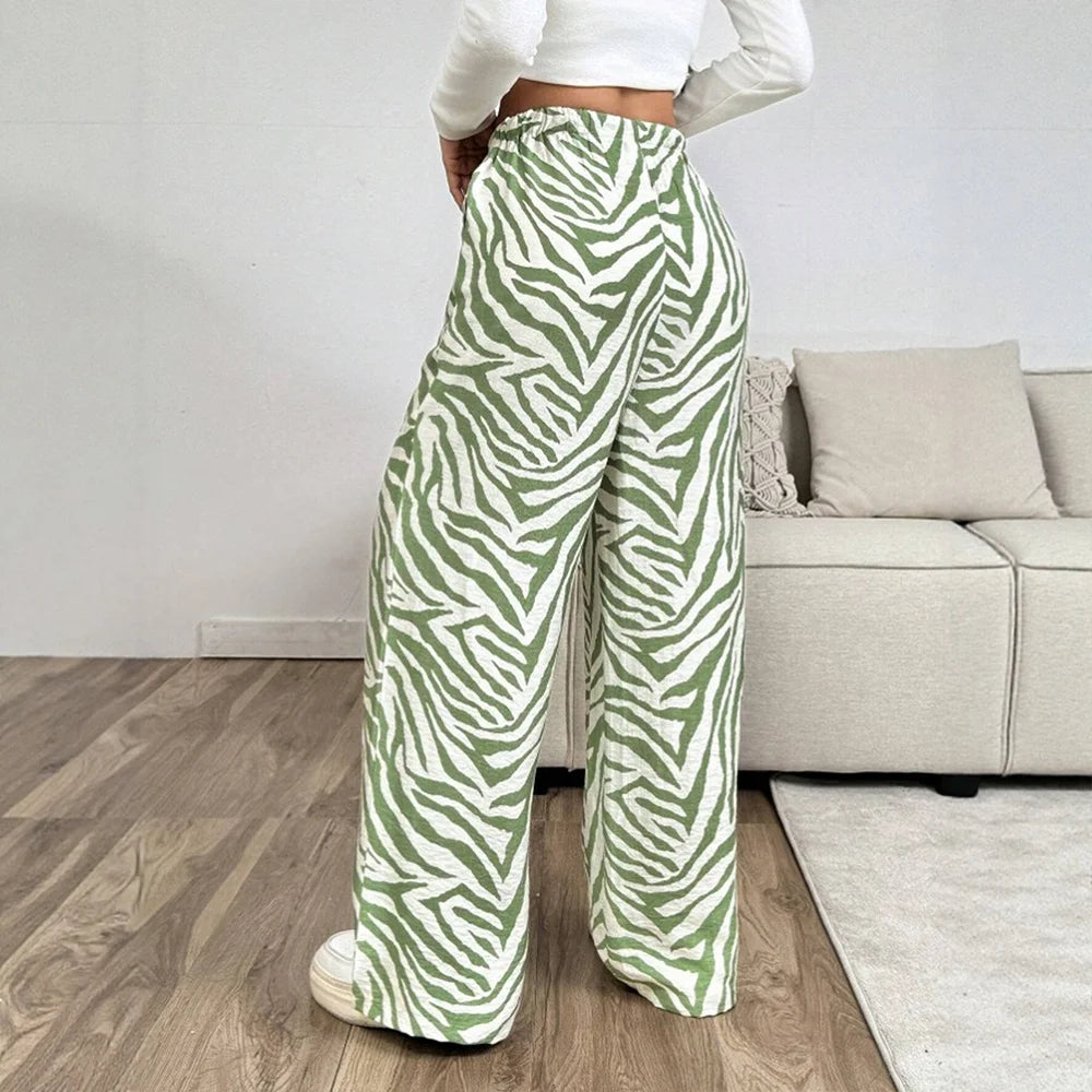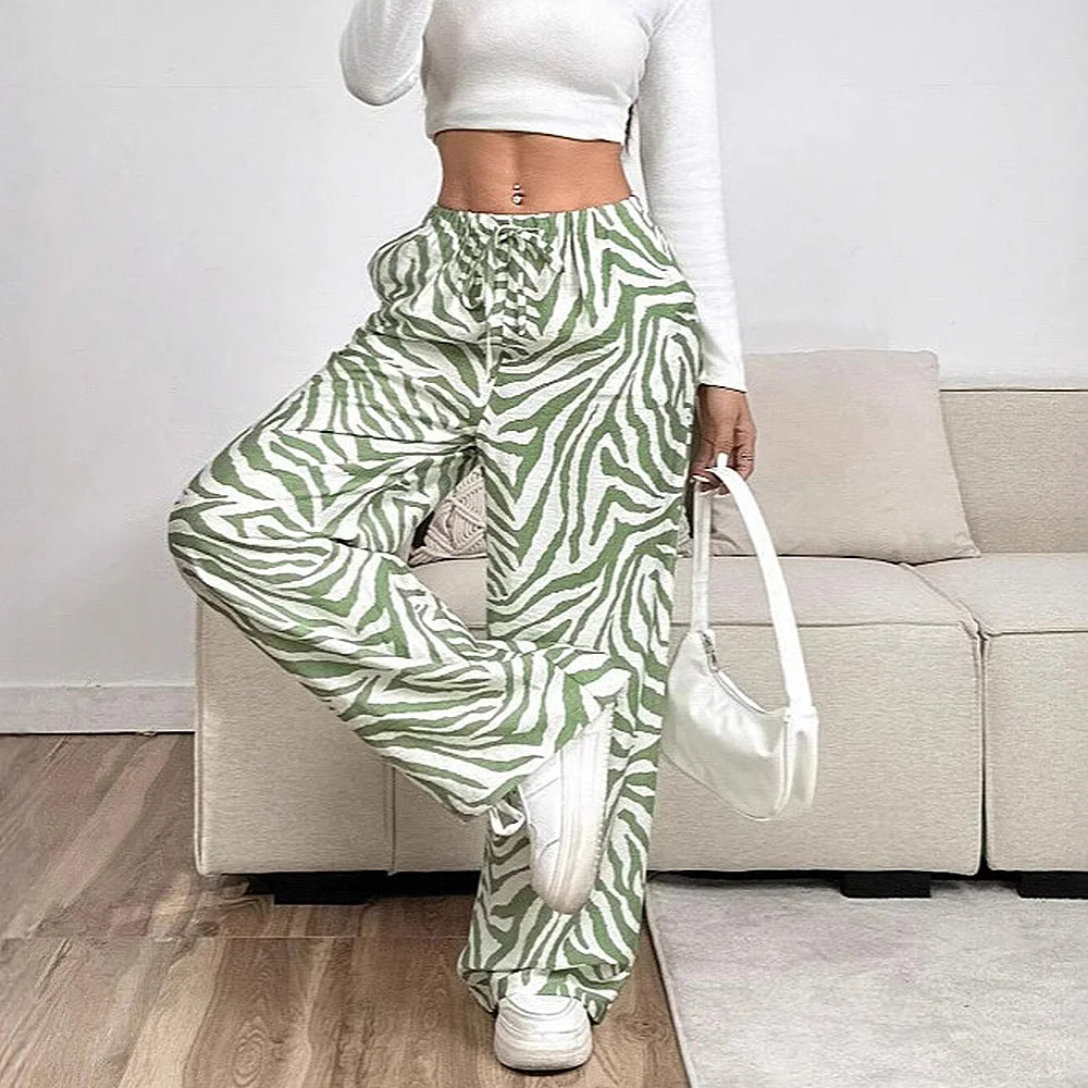 Women's Jeans 2025 Summer Chic Zebra-Stripe Low Waist Drawstring Full Length Wide Leg Streetwear Jeans
