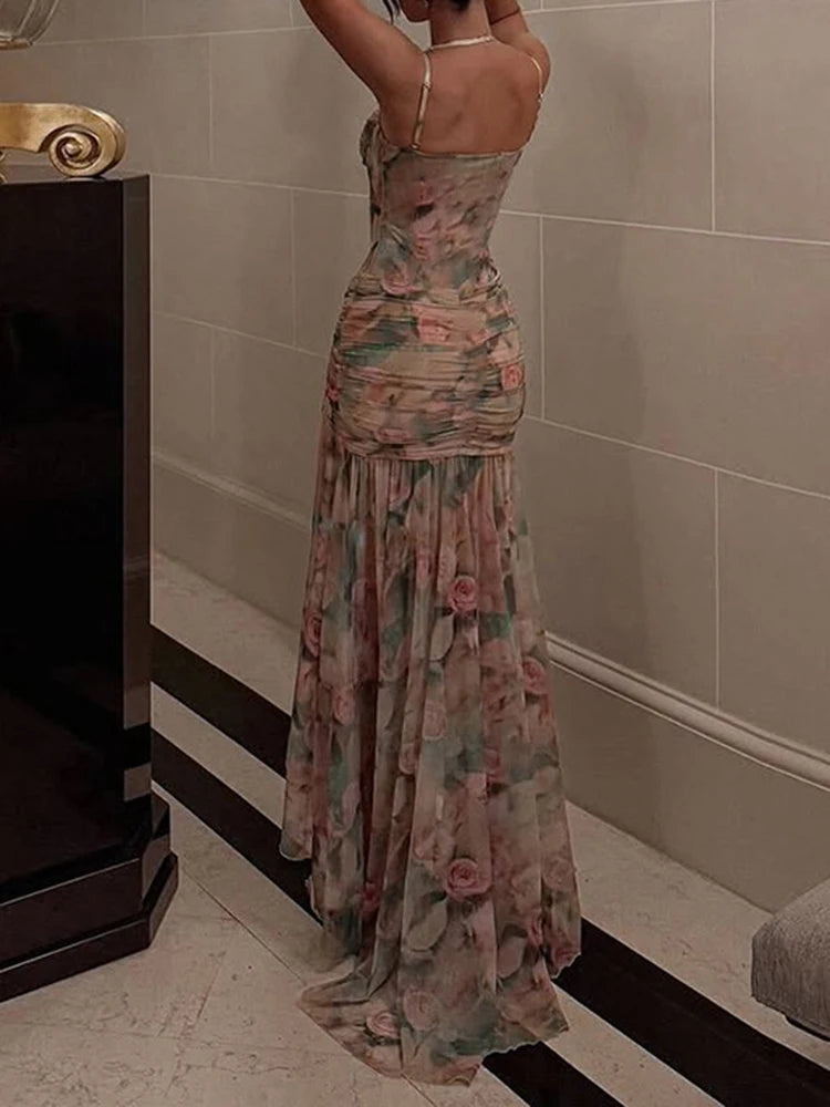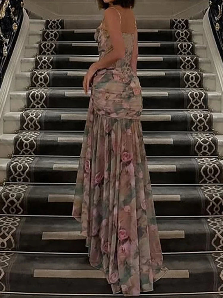 Women's Long Dresses Summer French Sexy 2025 Floral Skinny Fit Side Slit Sleeveless Sweetheart Neck Maxi Party Dresses