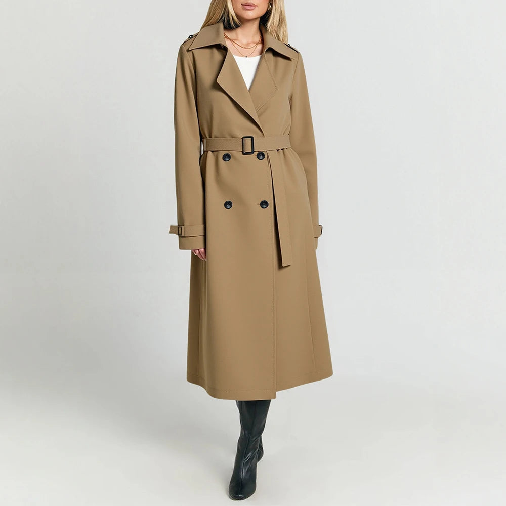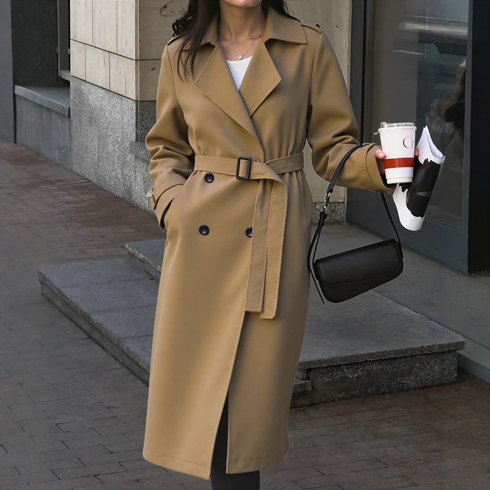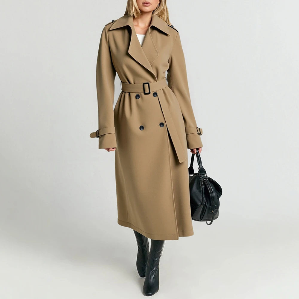Women's Trench Coat Autumn Casual Fashion Plain Button Front Long Sleeve Lapel Daily Office Lady Trench Coat
